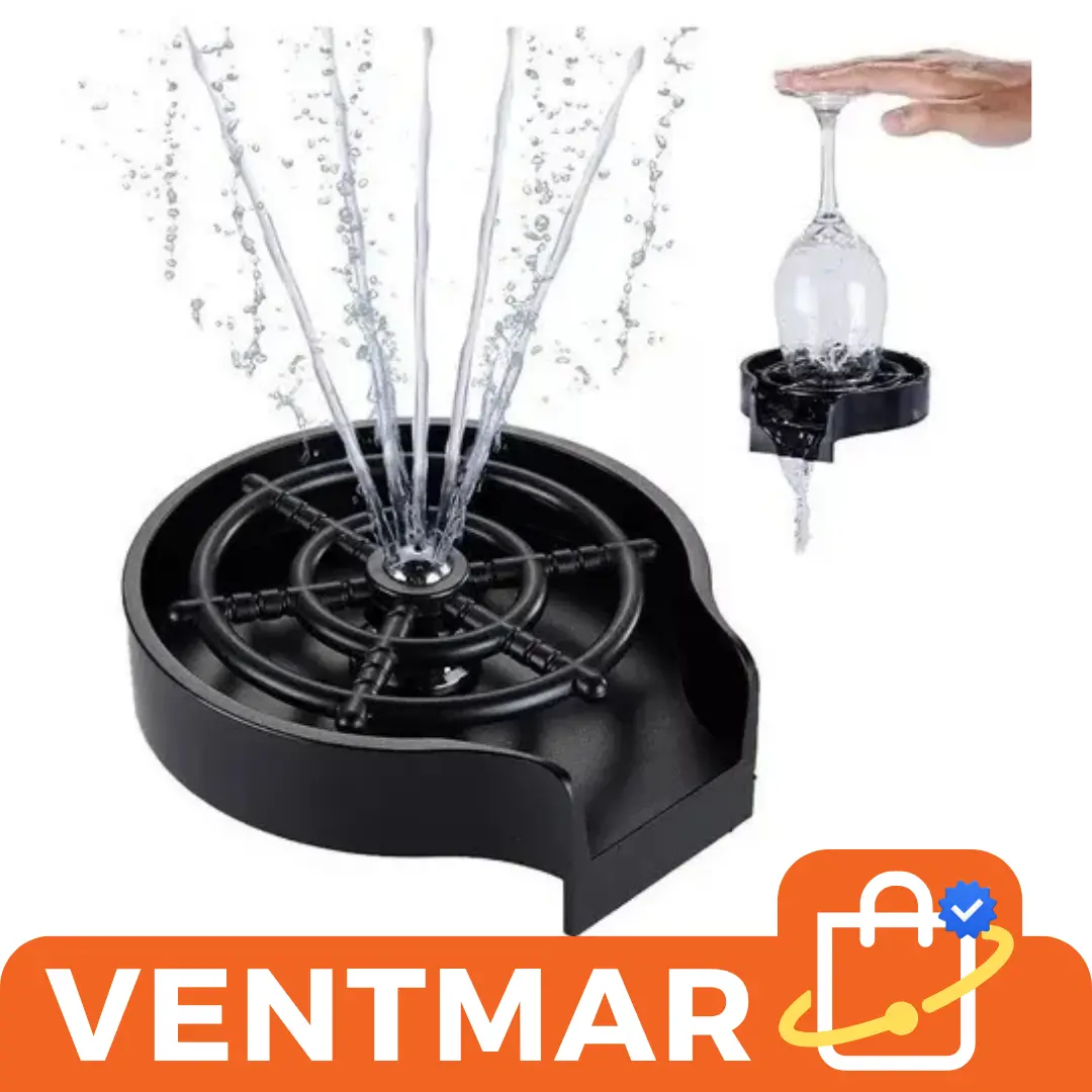 Este lavador automático de vasos para bacha permite limpiar vasos, copas y botellas fácilmente con solo presionarlos sobre el sistema de enjuague. Ideal para cocinas modernas, bares o uso doméstico diario.